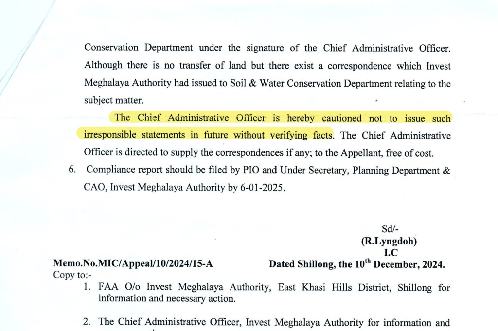 October 21 2024 – Showcause notice from State Information Commission to Invest Meghalaya Authority: The State Information Commission faced significant challenges in delivering the notice to the Invest Meghalaya Authority. The authority’s office location was initially unknown, and the notice was ultimately delivered to the Main Secretariat after multiple inquiries.